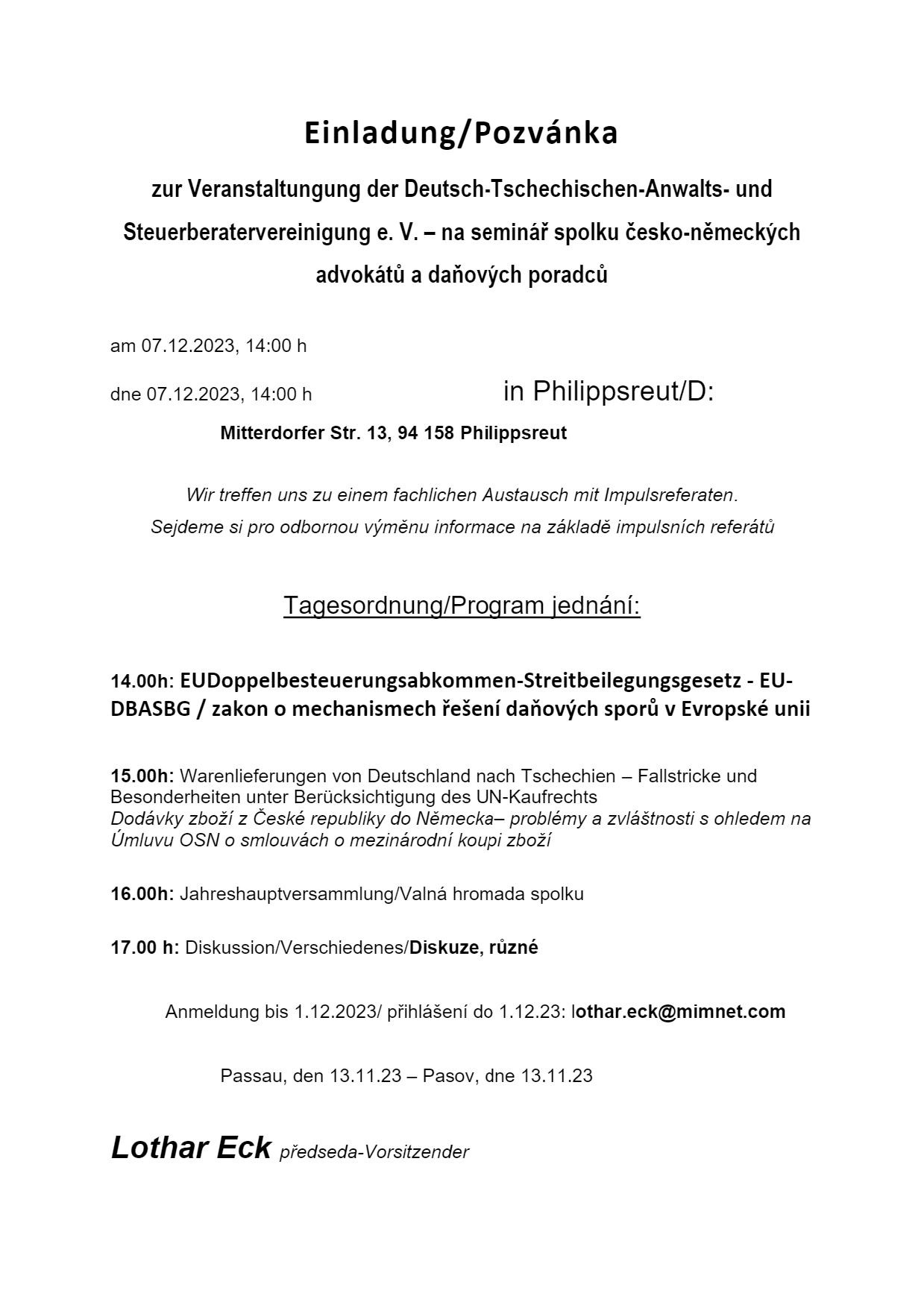 Die Vereinigung besteht seit 1995 und richtet sich an Rechtsanwälte, Steuerberater, Notare und sonstige Berufsträger, um den gegenseitigen fachlichen Wissens- und Erfahrungsaustausch zu fördern und grenzüberschreitende Netzwerke zu schaffen.
